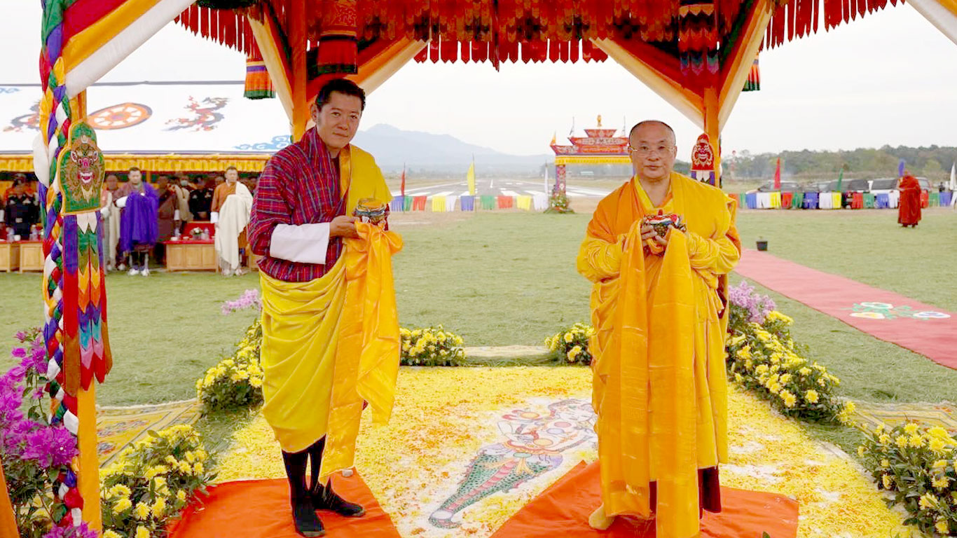 23 December 2023, His Majesty The King of Bhutan graced the Salhang Tendrel ceremony for the Gelephu International Airport. Image credit: BBS