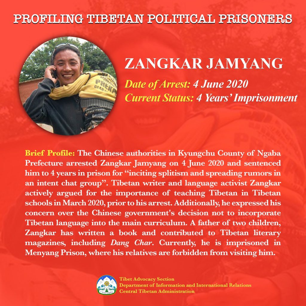 Married and a father of two, Jamyang also reportedly encouraged Tibetans to denounce the Chinese government’s efforts to prevent them from using and teaching their own language.